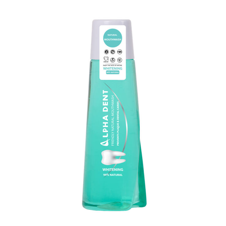دهانشویه طبیعی سفید کننده آلفادنت، یک دهانشویه بدون الکل و مناسب مینای دندان است که نه تنها نفس را تازه