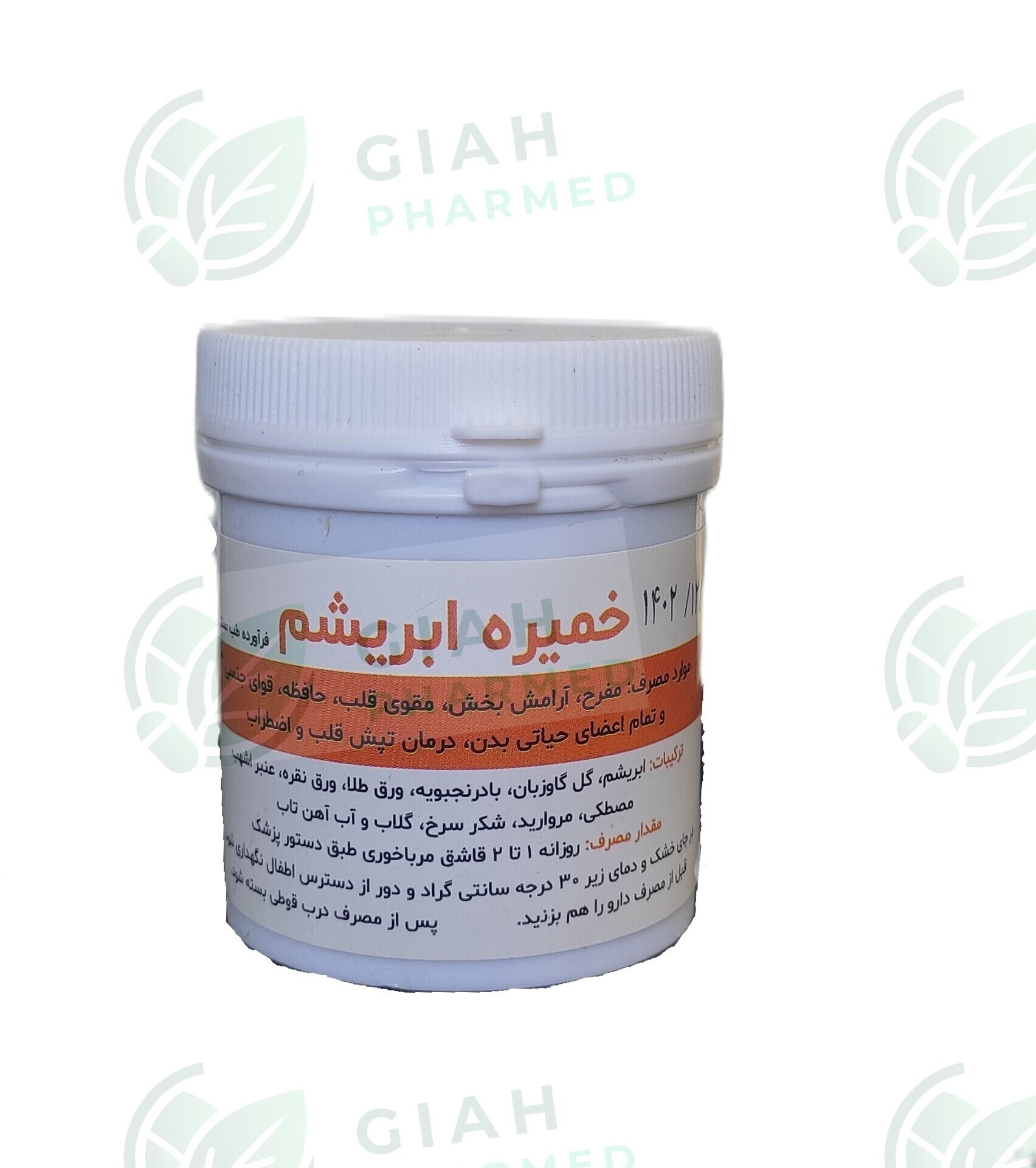 اجزاء فراورده: ابریشم خوراکی، گل گاوزبان، بادرنجبویه، ورق طلا، ورق نقره، عنبراشهب
