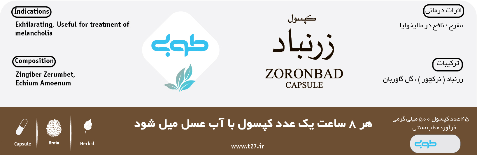 اجزاء فراورده: زرنباد ( نرکچور)، گل گاوزبان