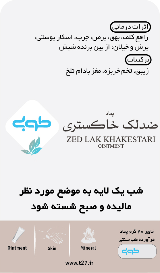 اجزاء فراورده: زيبق؛ مغز تخم خربزه؛ مغز بادام تلخ
