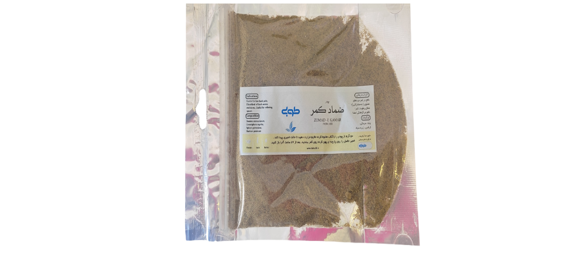 دستور مصرف: طبق تجویز پزشک معالج و یا 50 گرم از پودر را با گلاب مخلوط كرده ملايم حرارت دهند تا حالت خميري پيدا كند. خمير حاصل را روي پارچهاي پهن كرده روي كمر ببندند. بعد از 24 ساعت آن را باز كنند.
